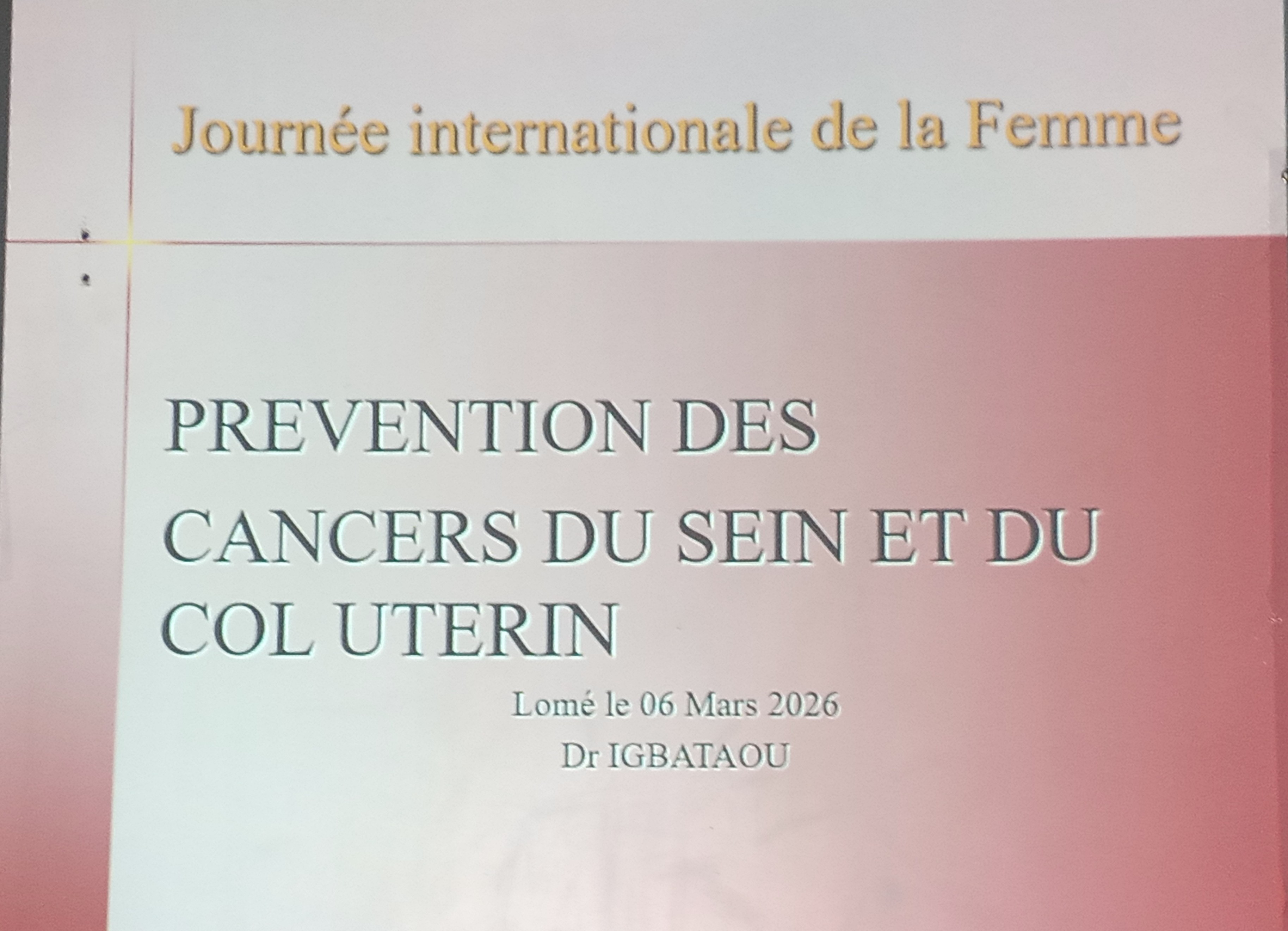 - « Prévention des cancers du Sein et de l’Utérus » présenté par le Docteur IGBATAOU Tcha-Ibone, Gynécologue.