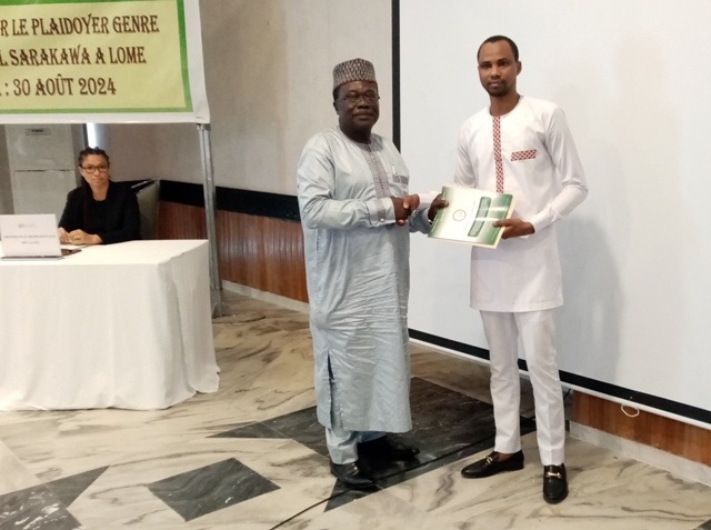 Ensuite, l’aspect technique du plaidoyer caractérisé par la visite guidée des palmarès du Togo en matière de promotion de la femme présenté par Monsieur Cyril Ekué KOMLAN, expert en plaidoyer et Madame Adoudé TOUNOU, expert en genre, et par la présentation de la plaquette de plaidoyer par Monsieur AMOUSSOU-GUENOU Assiba, Conseiller- Maître, suivie de la remise symbolique des plaquettes aux invités.